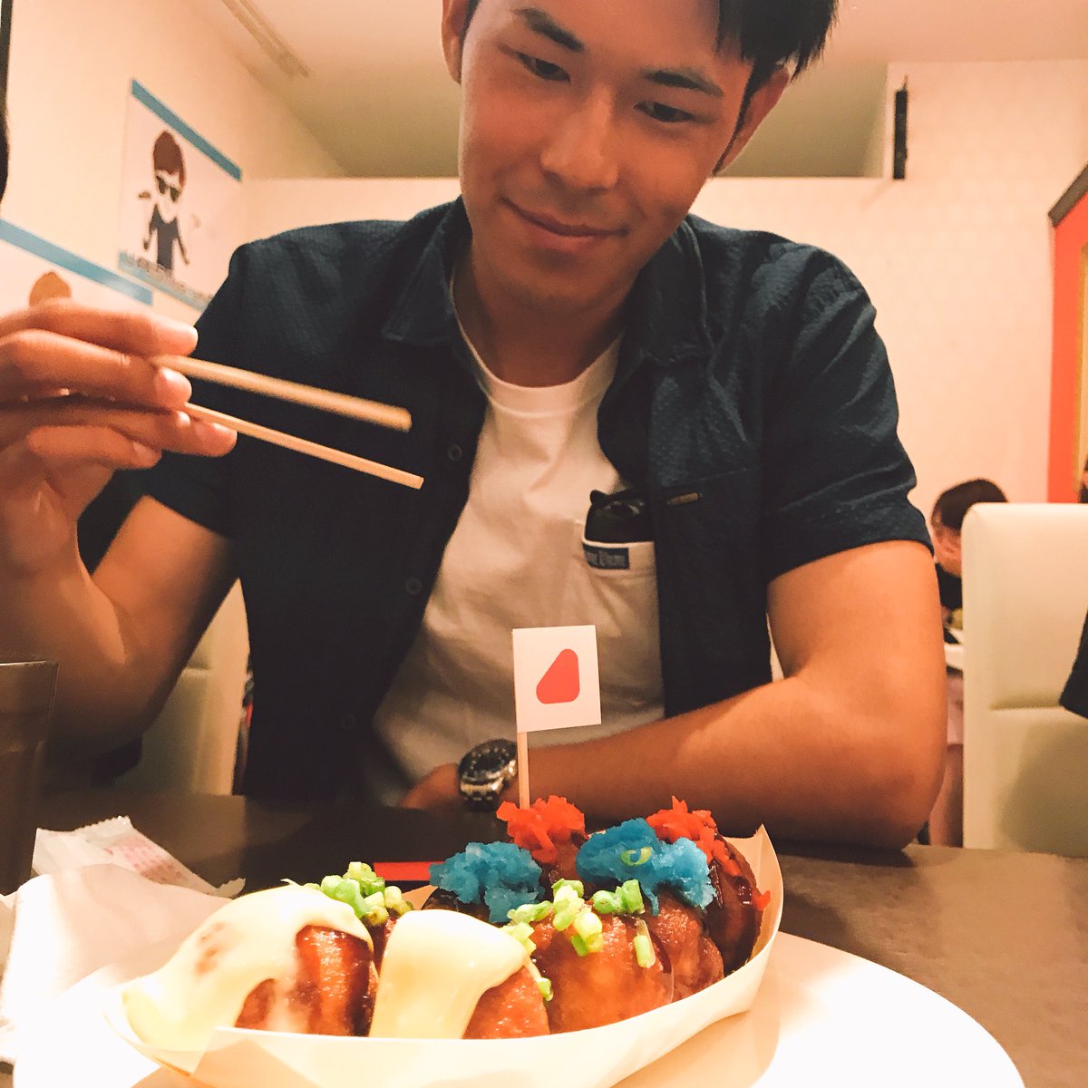としみつ 東海オンエア 昨日はイベント後に コラボカフェにもお邪魔しました お客さん満席の中急に驚かせてしまいすみません ほぼ全メニュー頼みましたがめちゃ美味しかった アバのたきょやきより りょうくんが映えてしまいすみませんでした 反省